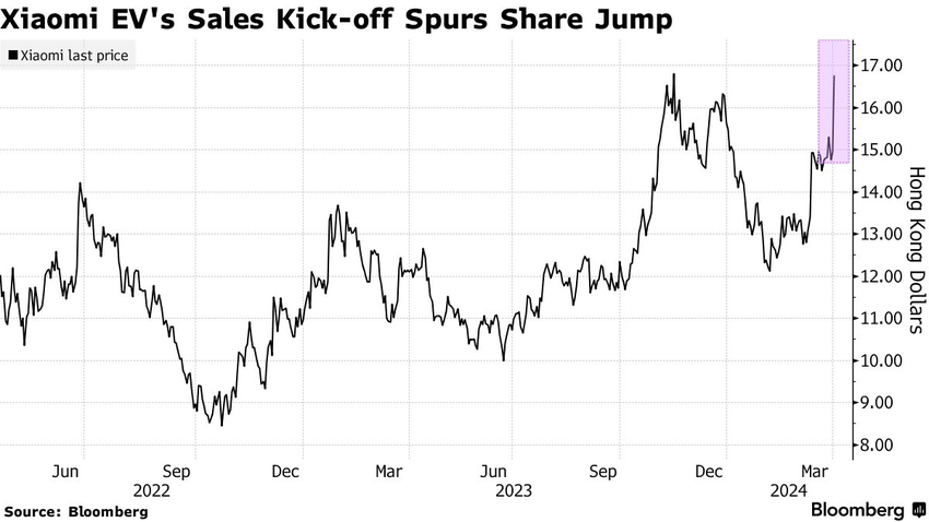 Xiaomi hat an der Börse in Hongkong aufgrund des Erfolgs seines ersten Elektroautos, das alle Schätzungen übertroffen hat, einen starken Anstieg verzeichnet.