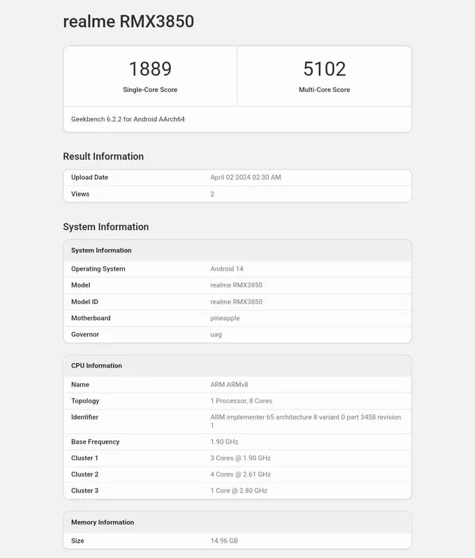 In den Geekbench-Benchmarks erzielte das Realme GT Neo 6 SE 1.889 bzw. 5.102 Punkte in Single-Core- und Multi-Core-Tests. Weitere Details zu dem Smartphone im Geekbench-Listing wurden nicht bekannt gegeben.