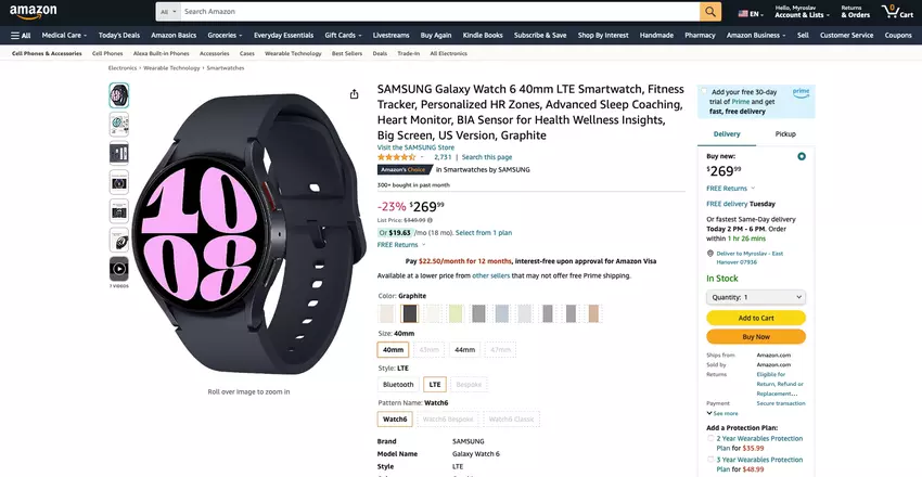 - Samsung Galaxy Watch 6 LTE, 40 mm - $279.97.