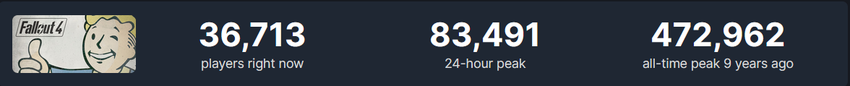 Am Wochenende spielten 83 Tausend Menschen gleichzeitig Fallout 4. Anfang April lag das maximale Online-Publikum jedoch bei 15 Tausend Menschen.