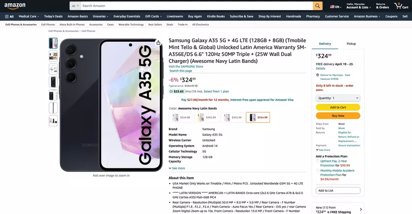Samsung Galaxy A35 5G kann auf Amazon für weniger als $350 gekauft werden