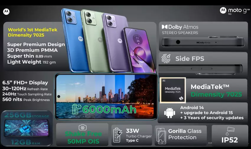 Motorola hat den Preis des Moto G64 5G mit Dimensity 7025 Chip, IP52 Schutz und 6000 mAh Akku bekannt gegeben