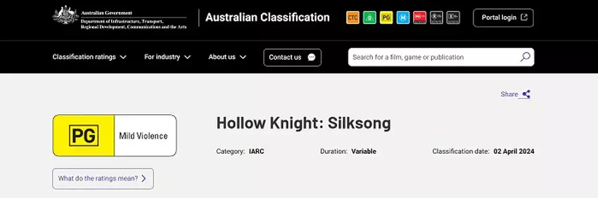 Es stellt sich heraus, dass die australischen Prüfer Silksong Anfang April ebenfalls eine Altersfreigabe erteilt haben. Sie sind der Meinung, dass das Spiel aufgrund der leichten Gewalttätigkeit für Personen über 15 Jahren empfohlen wird, und haben es daher mit PG bewertet.