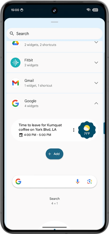 Eine weitere Widget-bezogene Verbesserung in Android 15 ist die Hinzufügung einer Schaltfläche "Hinzufügen" zur Widget-Auswahl des Pixel Launchers. Diese Schaltfläche erleichtert das Hinzufügen eines Widgets zu Ihrem Homescreen, da Sie das Widget nicht mehr antippen und halten und dann ziehen müssen. Stattdessen können Sie einfach auf "Hinzufügen" tippen und der Pixel Launcher fügt das Widget Ihrer Wahl automatisch dem leeren Platz auf Ihrem Homescreen hinzu.