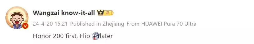 Laut der Quelle wird zuerst die Honor 200-Serie vorgestellt, danach wird Honor auch das Magic Flip enthüllen. Obwohl er keine genauen Daten nannte, besagt ein kürzlich aufgetauchtes Leck, dass die Honor 200-Serie im Juni debütieren wird.