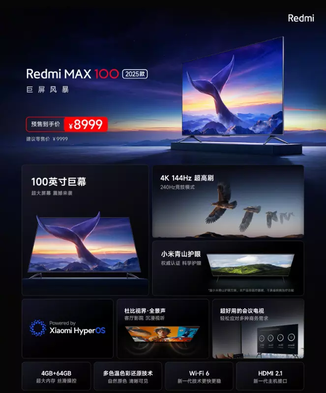 Xiaomi hat den Redmi Max TV 2025 vorgestellt: ein 100-Zoll-Smart-TV mit bis zu 240Hz-Panel und HyperOS an Bord
