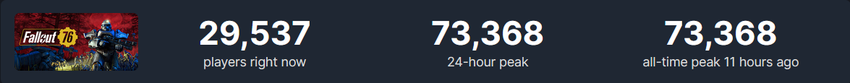Obwohl der Rabatt für das Spiel nicht mehr gültig ist, hat er das Spiel nicht daran gehindert, einen neuen Online-Höchststand zu erreichen. Am Abend des 21. April spielten 73.000 Menschen gleichzeitig Fallout 76, was fast doppelt so viel ist wie der Rekord vom 14. April.