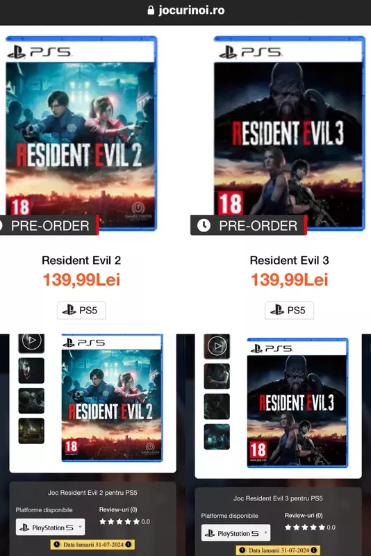 Auf der Website eines rumänischen Händlers wurden Informationen über Disc-Versionen von Resident Evil 2, 3 und 7 für PlayStation 5 veröffentlicht. Später wurde das Produkt von der Website entfernt, aber die Discs werden Berichten zufolge am 31. Juli 2024 erscheinen. Wahrscheinlich hat die Website die Informationen also früher als geplant veröffentlicht.
