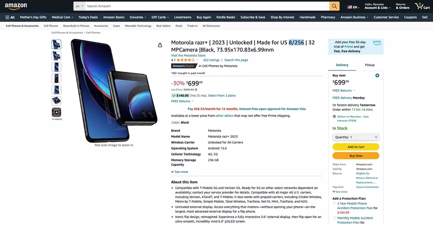 Bester Preis: Motorola Razr+ (2023) faltbares Smartphone auf Amazon mit $300 Rabatt