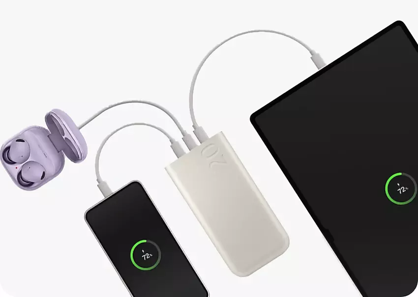 Die Rede ist von Akkus mit den Modellnummern EB-U2510 und EB-P4520. Die erste Neuheit erhielt eine Leistung von 25 W, Unterstützung für kabelloses Laden für Smartwatches und Kopfhörer, zwei USB-C-Anschlüsse und eine Kapazität von 10.000 mAh.