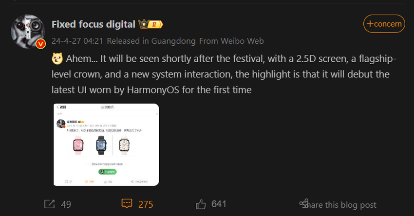 Einem Leak des chinesischen Insiders Fixed Focus Digital zufolge wird die Uhr einen rechteckigen 2,5D-Bildschirm und eine "Flaggschiff-Krone" auf der linken Seite haben. Renderings der Smartwatch, die diese Woche aufgetaucht sind, zeigen ein völlig anderes Design als ihr Vorgänger und ähneln stark der Apple Watch.