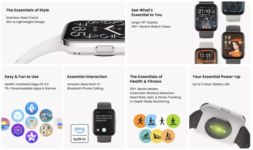 Amazfit Bip 5 Unity: 1,91-Zoll-LCD-Display, IP68-zertifiziertes Edelstahlgehäuse und Unterstützung für über 120 Modi für $59