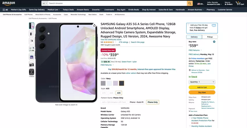 Zeitlich begrenztes Angebot: Samsung Galaxy A35 5G ist bei Amazon mit einem Rabatt von 40 Dollar erhältlich