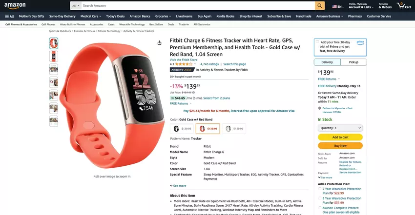 Fitbit Charge 6 mit AMOLED-Display, Google Wallet und EKG-Sensor kann bei Amazon mit einem Rabatt von $20 erworben werden