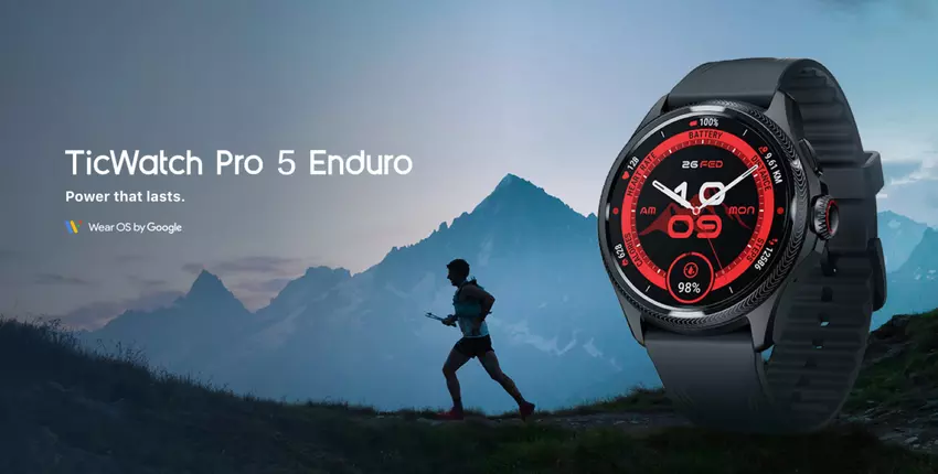 Das Modell wurde auf den Namen TicWatch Pro 5 Enduro getauft. Die Neuheit erhielt den gleichen Snapdragon W5+ Gen 1 Chip, 2 GB RAM, 32 GB internen Speicher, einen 628-mAh-Akku und das gleiche 1,43-Zoll-Dual-Display.