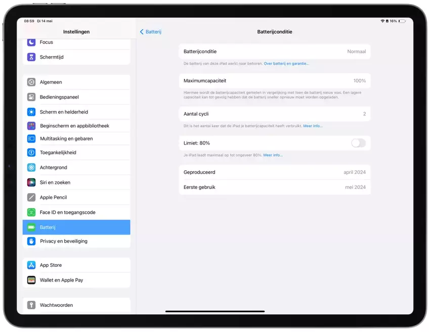 Die Information wurde von unseren Kollegen von iCulture geteilt. Dank Battery Health können die Besitzer der neuen Apple-Tablets den Zustand der Batterie, die maximale Kapazität sowie die Anzahl der Ladezyklen einsehen. Das neue Menü befindet sich in der Rubrik "Batterie". Dort kann man übrigens auch die Aufladung von Tablets auf 80 % begrenzen. Laut Apple verringert die Verkürzung der Zeit bis zum vollständigen Aufladen der Batterie den Verschleiß und erhöht die Lebensdauer der Batterie.