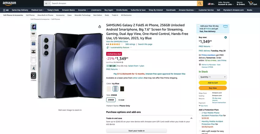 Samsung Galaxy Fold 5 faltbares Smartphone kann auf Amazon mit einem $450 Rabatt gekauft werden