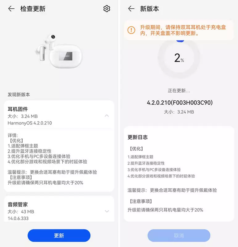In der neuen Version der Software haben die Entwickler die Stabilität der Bluetooth-Verbindung verbessert. Darüber hinaus hat Huawei die Verbindung zu mehreren Geräten optimiert, die Tonverzögerung bei Spielen und Videos verringert und eine neue Pop-up-Fensteroberfläche bei der Verbindung mit einem Smartphone hinzugefügt.