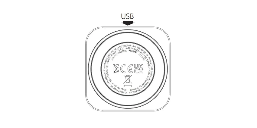 Außerdem wurde eine Ladestation für den Galaxy Ring vorgeführt, die eine quadratische Form hat und über einen USB-Anschluss, wahrscheinlich Typ C, verfügt. Die Ladegeräte haben ebenfalls unterschiedliche Modellnummern und können je nach Größe des Rings variieren.