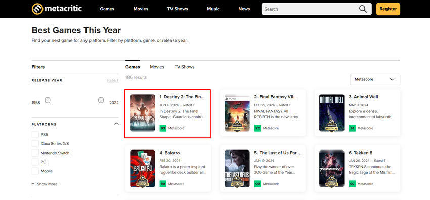 The Final Shape hat von den Kritikern 93 von 100 Punkten erhalten. Das ist bisher das beste Ergebnis aller im Jahr 2024 veröffentlichten Spiele. Die Kritiker sagen, dass The Final Shape der neue Goldstandard für Destiny ist.