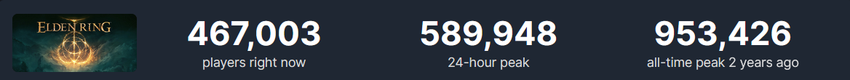 Am 21. Juni erreichte die Online-Spitze 590 Tausend Spieler. Davor lag der Durchschnitt bei 100-170 Tausend Spielern. Und 590 ist nur auf PC (Steam), weil die Daten auf Konsolen unbekannt sind, aber auf jeden Fall wird Elden Ring jetzt seine zweite Welle der Popularität erleben. Selbst zum Zeitpunkt der Erstellung dieses Artikels hat das Spiel mehr als 450 Tausend Spieler.