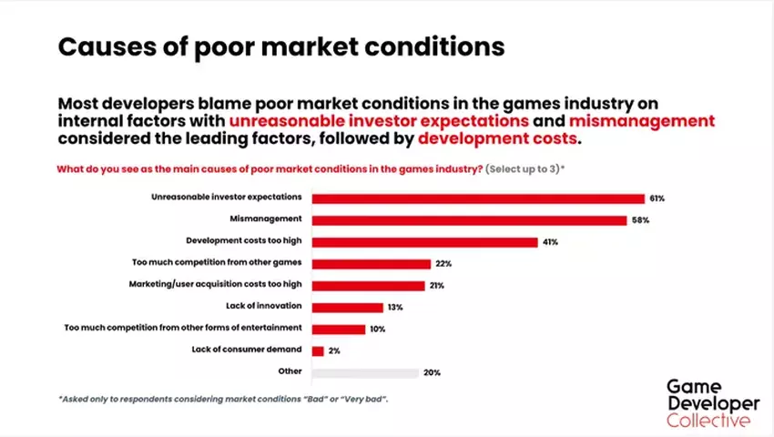 Mit "Marktbedingungen" meinen wir das ungewöhnlich schwierige Umfeld in der Branche, wie die Entlassungswelle und die Schließung von Studios, sowie die finanziellen Schwierigkeiten der Studios, die diesen Ereignissen vorausgingen.