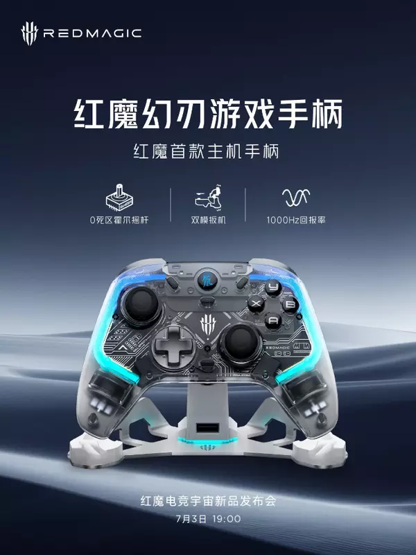 Die Rede ist vom Game-Controller RedMagic Phantom Blade. Die Neuheit wird mit einem transparenten Gehäuse, RGB-Beleuchtung, "Dual-Mode-Triggern" sowie einer niedrigen Eingabe-Latenz ausgestattet sein. Das Gerät wird mit einem Ständer geliefert. Es wird mit einem USB-A-Anschluss ausgestattet sein.