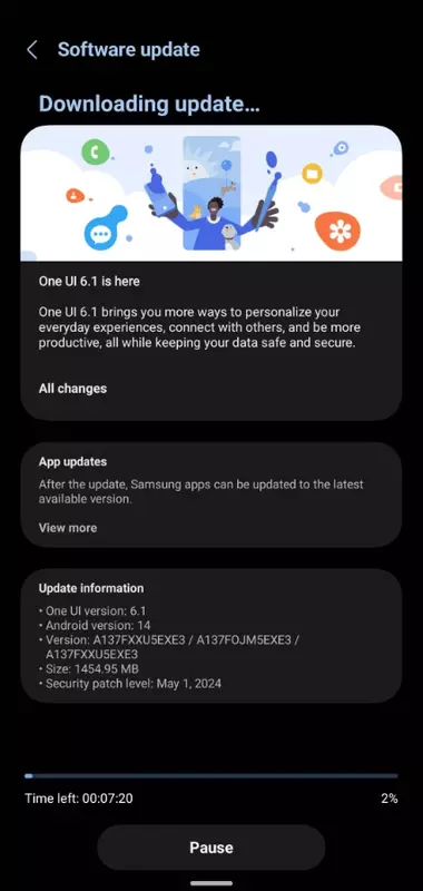 Das Update hat die Build-Nummer A137FXXU5EXE3 und ist 1,4 GB groß. Die Firmware wird bereits in Wellen an Smartphones in Europa ausgerollt. Sie können in den Einstellungen des Geräts nach OTA suchen.