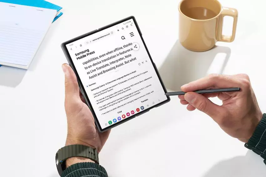 - Übersetzer: Der neue Konversationsmodus Translate nutzt den Dual-Screen-Formfaktor des Fold6, so dass beide Parteien die Übersetzung auf dem Startbildschirm und dem Außenbildschirm sehen können.
