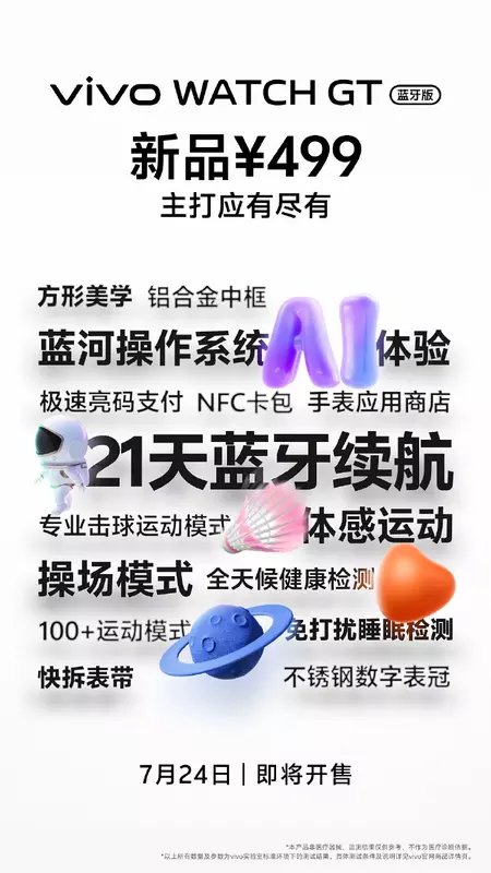 Vivo hat eine neue Version seiner Smartwatch WATCH GT angekündigt, die Vivo WATCH GT Bluetooth Edition. Sie wird am 24. Juli vorgestellt werden.