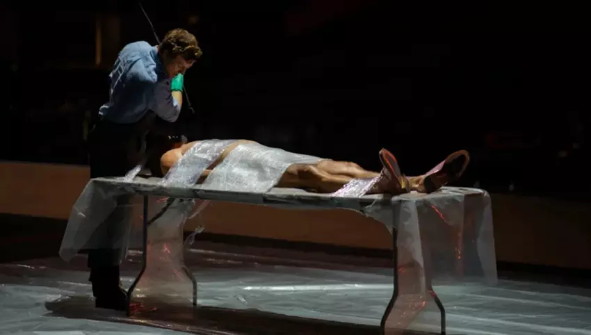 Auf den gezeigten Fotos sieht man einen grüblerischen Dexter, gespielt von Patrick Gibson, und auf einem anderen Bild ist seine Figur offenbar gerade dabei, einen gefesselten Mann zu töten.