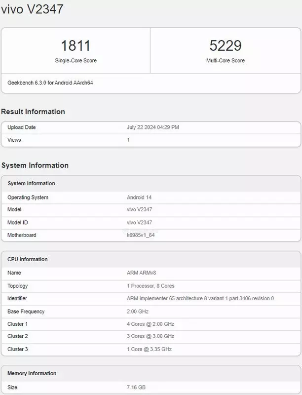 Unsere Kollegen von MySmartPrice haben in der Datenbank des Geekbench Leistungstests das vivo V40 Pro Smartphone mit der Modellnummer V2347 entdeckt. Dem Bericht zufolge wird die Neuheit mit einem achtkernigen MediaTek Dimensity 9200+ Prozessor ausgestattet sein. Darüber hinaus wird das Gerät 8 GB RAM und Android 14 Betriebssystem aus der Box zu bekommen.