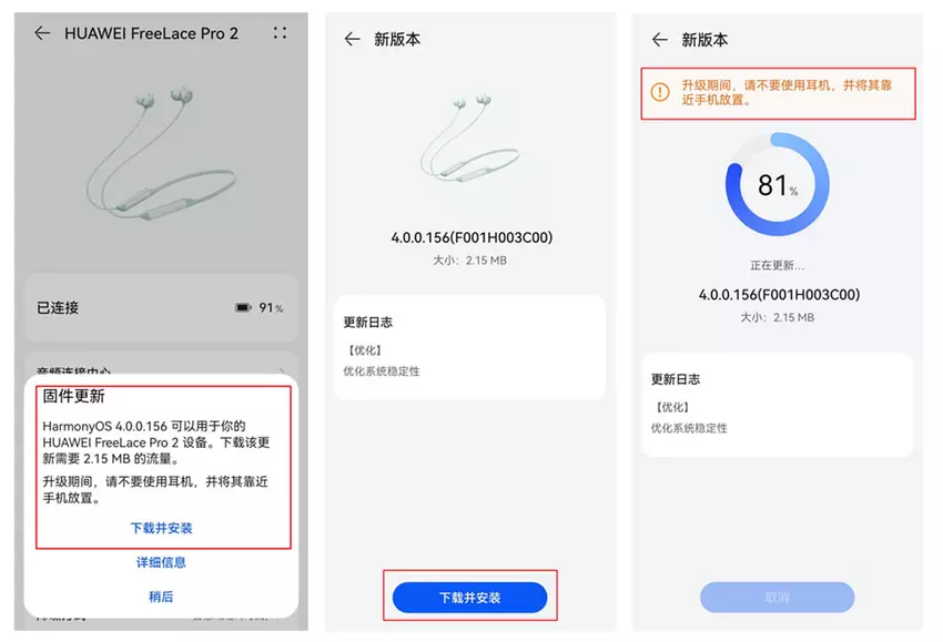 Die Firmware hat die Nummer HarmonyOS 4.0.0.0.156 erhalten. Das System wiegt nur 2,15 MB. Das Update wird bereits in Wellen in China an die Kopfhörer verteilt. Wenig später wird die Software auch auf dem globalen Markt veröffentlicht werden. Sie können die OTA-Verfügbarkeit in der App auf Ihrem Smartphone überprüfen.