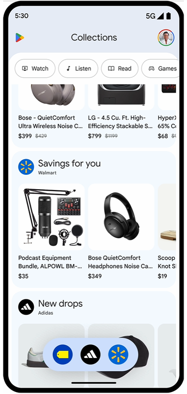 Google führt außerdem kuratierte Bereiche ein, die "Collections" genannt werden und in denen Nutzer Apps auf der Grundlage ihrer Interessen finden können. Mit der neuen Funktion "Personalisierung in Play" können Nutzer den Zugriff auf App-Daten individuell gestalten.