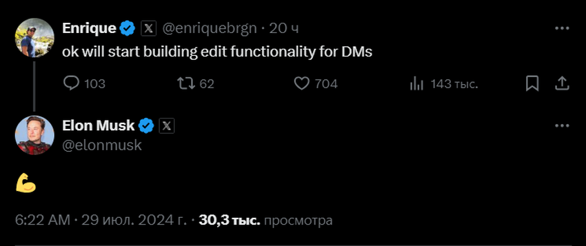 Die Entwicklung wurde von einem X-Mitarbeiter bestätigt, der anmerkte, dass das Team gerade erst mit der Arbeit an der Funktion begonnen hat. Obwohl der genaue Starttermin noch nicht bekannt ist, hat Ilon Musk die Nachricht unterstützt, indem er das Emoji auf dem ursprünglichen Posting hinterließ. Die Möglichkeit, Antworten zu bearbeiten, wurde ebenfalls diskutiert, hat aber noch keine Priorität.