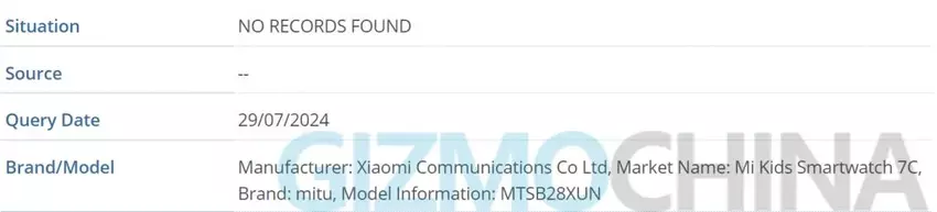 Xiaomi bereitet die Veröffentlichung einer neuen Smartwatch für Kinder vor - Xiaomi Kids Smartwatch 7C, Modell MTSB28XUN.