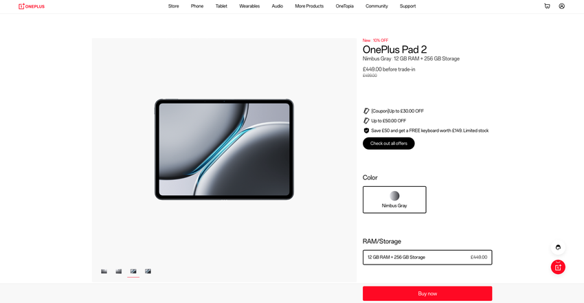 Das Tablet ist in Großbritannien bereits erhältlich. Es gibt nur eine Farbe Nimbus Gray und eine Speichervariante mit 12 GB RAM und 256 GB Speicherplatz. Der Preis des Geräts liegt bei 499 Pfund, aber Erstkäufer können es für 449 Pfund bekommen. OnePlus bietet außerdem eine Tastatur als Geschenk und einen Rabatt von 30 £ für diejenigen, die ihr altes Gerät verschenken.