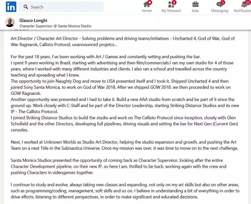 Laut dem LinkedIn-Profil des in Santa Monica ansässigen Character Supervisors Glauco Longhi ist das nächste Spiel des Studios eine brandneue IP. Er arbeitet persönlich an der Charakterentwicklung für das Projekt, das noch völlig unbekannt ist.