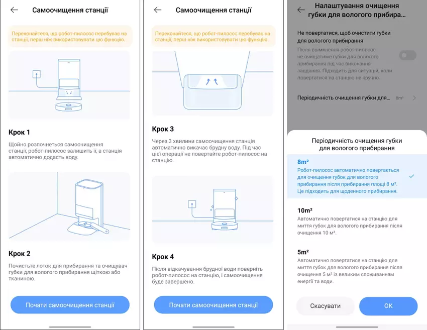 - Sie können auch die Anzeige ändern, nach der der Roboter zur Station zurückkehrt, um die Schwämme/Tücher zu reinigen. Anstelle der standardmäßigen 8 Quadratmeter können Sie 5 oder 10 einstellen. Ich bin mit den Standardeinstellungen zufrieden.