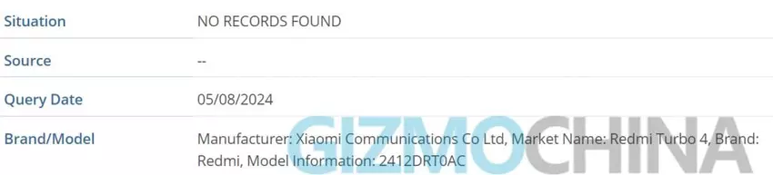 Die Information wurde von der Publikation Gizmochina geteilt. Das Redmi Turbo 4 ist in der IMEI-Datenbank mit der Modellnummer 2412DRT0AC aufgetaucht. Der Buchstabe "C" zeigt an, dass das Smartphone für den chinesischen Markt (China) veröffentlicht wird. Was die globale Version betrifft, so wird es wahrscheinlich als POCO F7 auf den Markt kommen.