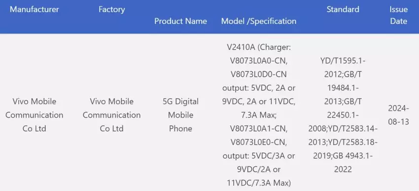 Dies wurde von einem chinesischen Insider enthüllt. Die Neuheit wird unter dem Namen vivo Y300 Pro 5G (Modellnummer V2410A) auf den Markt kommen. Das Smartphone hat bereits die Zertifizierung durch die chinesische Agentur 3C bestanden.