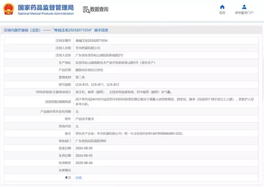 Es sieht so aus, als sei die Uhr bereit für die Markteinführung. Einem Insider zufolge hat das tragbare Gerät von Huawei kürzlich eine chinesische Lizenz für medizinische Geräte erhalten. Diese Lizenz ist für den Verkauf medizinischer Geräte in China erforderlich.