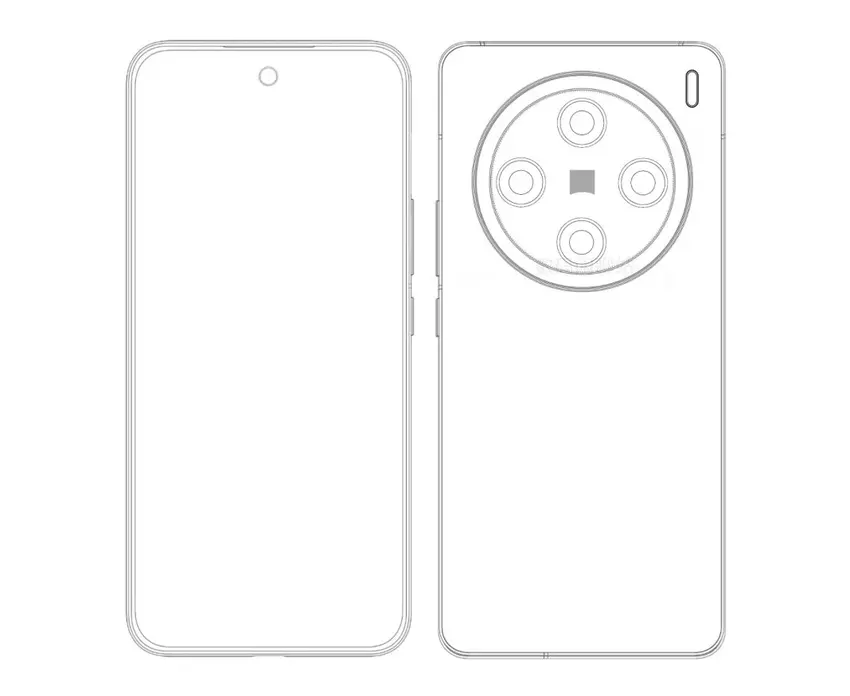 Die Skizze zeigt, dass das ZEISS-Logo in der Mitte des Kameramoduls platziert ist, was bestätigt, dass das Gerät zur X200-Serie gehört. Das Vivo X200 wird Berichten zufolge einen 6,4 oder 6,5 Zoll großen Flachbildschirm mit 1,5K-Auflösung haben, während das X200 Pro ein gebogenes Display haben wird. Der obere Rahmen über dem Loch für die Frontkamera beherbergt den Lautsprecher. Auf der rechten Seite des Geräts befinden sich die Lautstärke- und Einschalttasten.