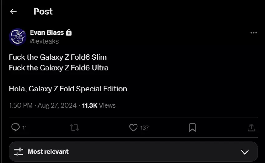 Früher wurde angenommen, dass das neue Gerät Galaxy Fold 6 Slim oder Ultra heißen würde, aber nach Informationen von Insider Evan Blass, der Name "Slim" oder "Ultra" kann nicht wahr sein. Stattdessen könnte das neue Produkt "Special Edition" heißen und eine eigene Linie werden, ähnlich wie die Galaxy Watch Ultra.