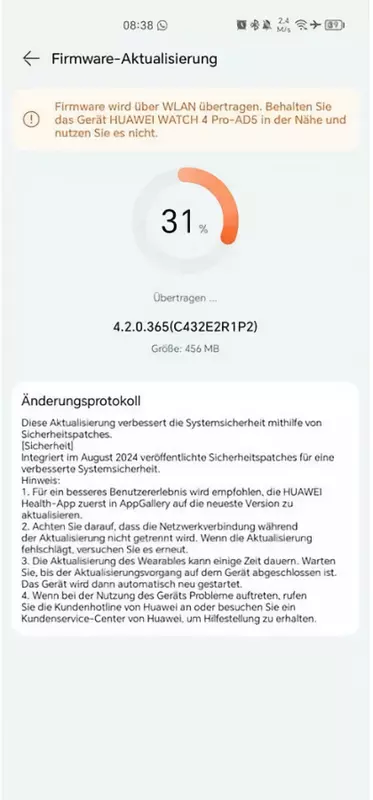 Das Update wurde unter der Nummer HarmonyOS 4.2.0.365 veröffentlicht. Die Firmware wiegt 456 MB und wird bereits in Wellen an Geräte auf dem globalen Markt ausgerollt. Sie können in den Einstellungen der Uhr oder über eine App auf Ihrem Smartphone nach OTA suchen.
