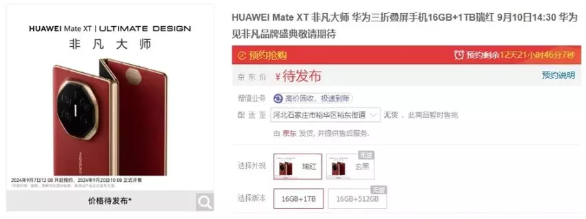 Das Mate XT Ultimate Design ist in den Versionen 16/512 GB und 16 GB/1 TB Speicher sowie in zwei Farben - Ruihong und Xuanhei - erhältlich. Der offizielle Verkaufsstart in China wird am 20. September erfolgen.
