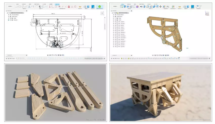Jedes Bein ist aus laminiertem Bambus gefertigt und wurde in Autodesk Fusion 360 entworfen.