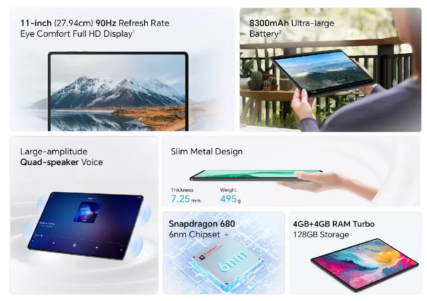 Honor Pad X8a: 90Hz Display, Snapdragon 680 Chip und 8300mAh Akku für $155