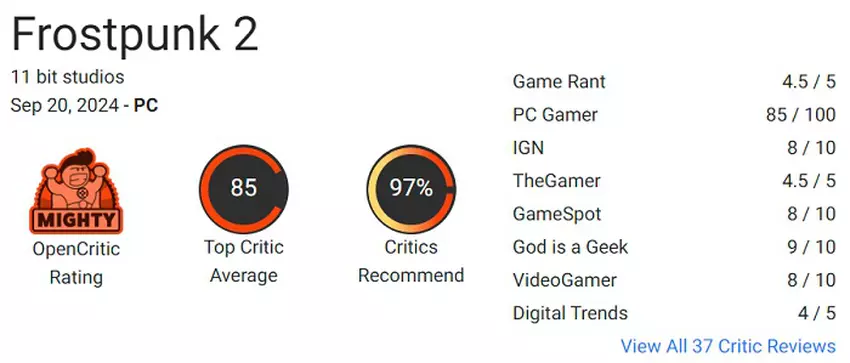 Ansonsten ist Frostpunk 2 ein exzellentes Spiel, wie die Wertungen auf Aggregatoren zeigen: