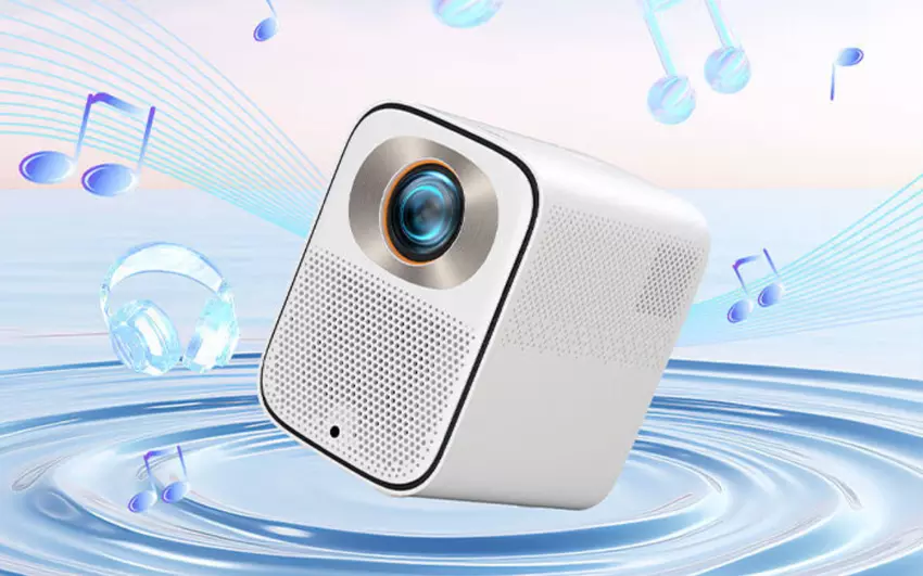 Der Xiaoxin 100GT verfügt über eine 360-Grad-Projektionsfunktion, mit der Sie Bilder an Decken, Wände oder Tische projizieren können. Darüber hinaus verfügt der Projektor über eine Technologie mit geringem Blaulichtanteil, um die Belastung der Augen zu reduzieren. Die 5-Watt-Lautsprecher liefern einen hochwertigen Klang, der auf niedrige Frequenzen bis zu 80 Hz abgestimmt ist.
